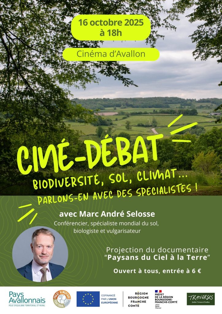 Rendez-vous au cinéma d’Avallon, à partir de 18h pour la projection du documentaire « Paysans du Ciel à la Terre » qui sera suivi d’un débat animé par le conférencier Marc-André Selosse.